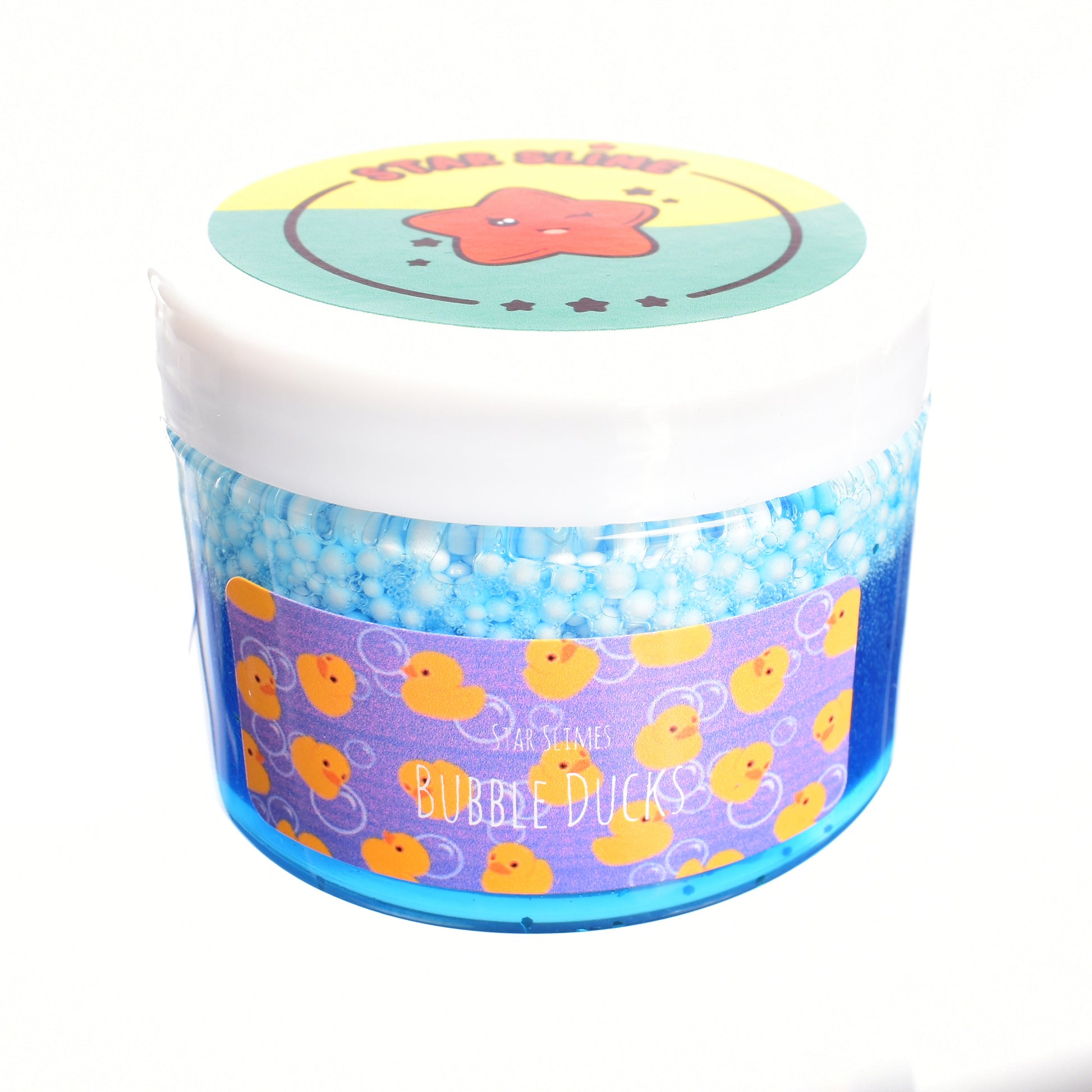 Floam slime made with clear slime and white foam beads to give you the best sensory experience and topped of with two of the cutest ducks. The pops and crunches are amazing with this slime.