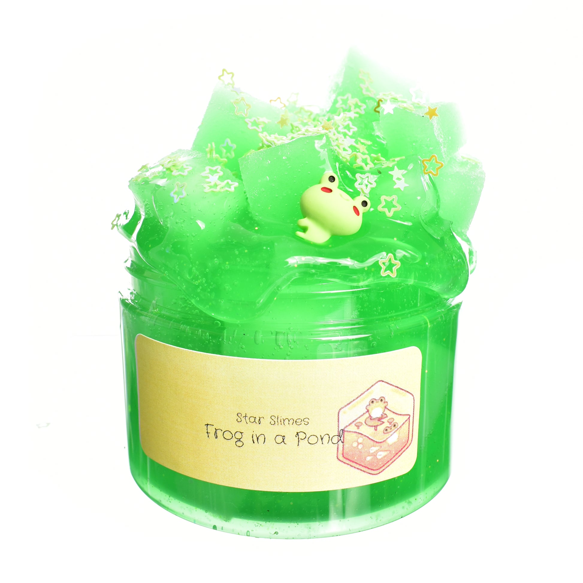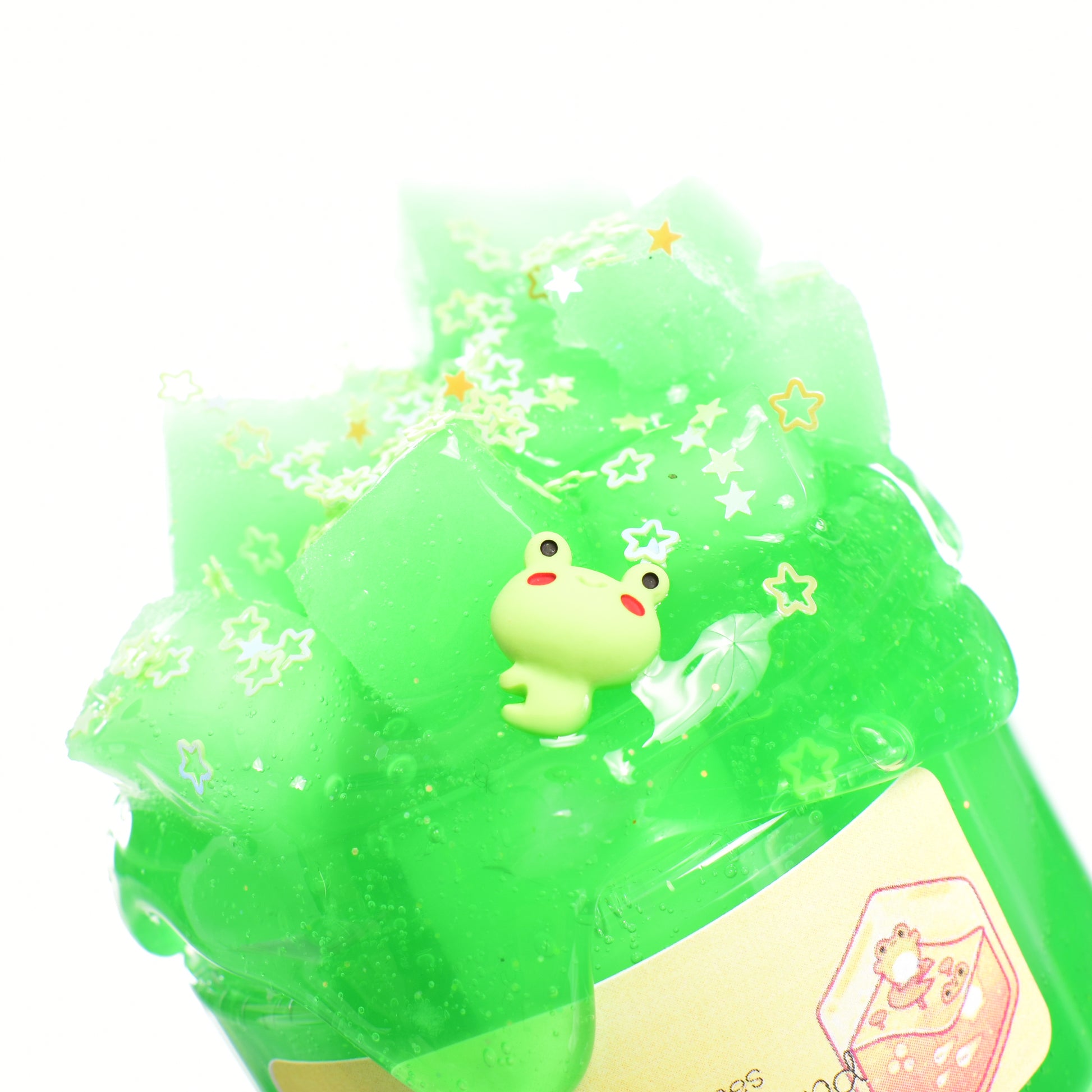 Lonely Green frog in a jelly cube slime. Green sticky messy slime great for squeezing and popping the cubes and great for stress relief. Has a fantastic grapefruit and kiwi scent. Please note this is a sticky slime and would be considered a more experienced slime users slime.