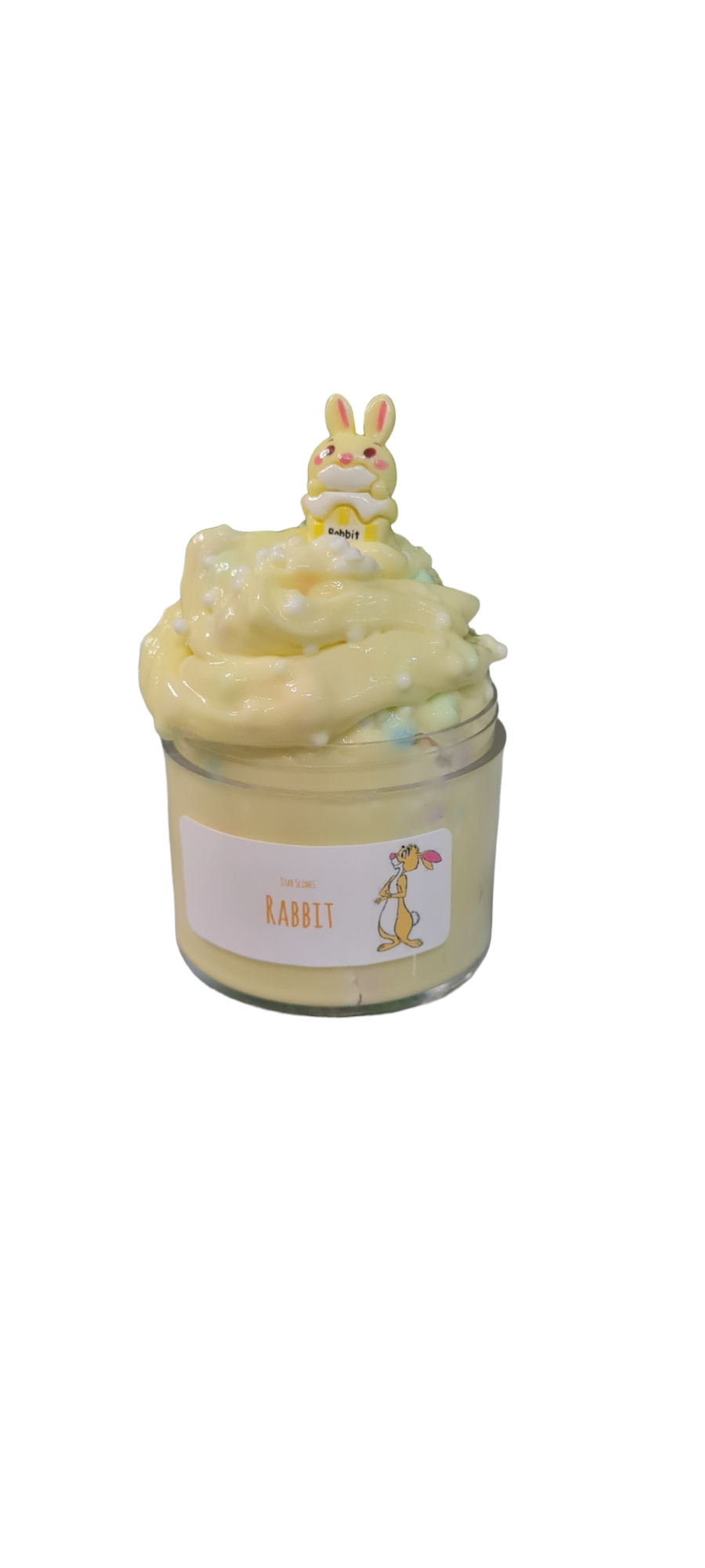 Winnie the poo inspired collection, Yellow glossy crunchy floam slime. Watch the slime inflate as you enjoy all the pops and crunches from this slime. Pastel colour bringS about the spring and summer vibes. Comes with the cutest Rabbit charm.